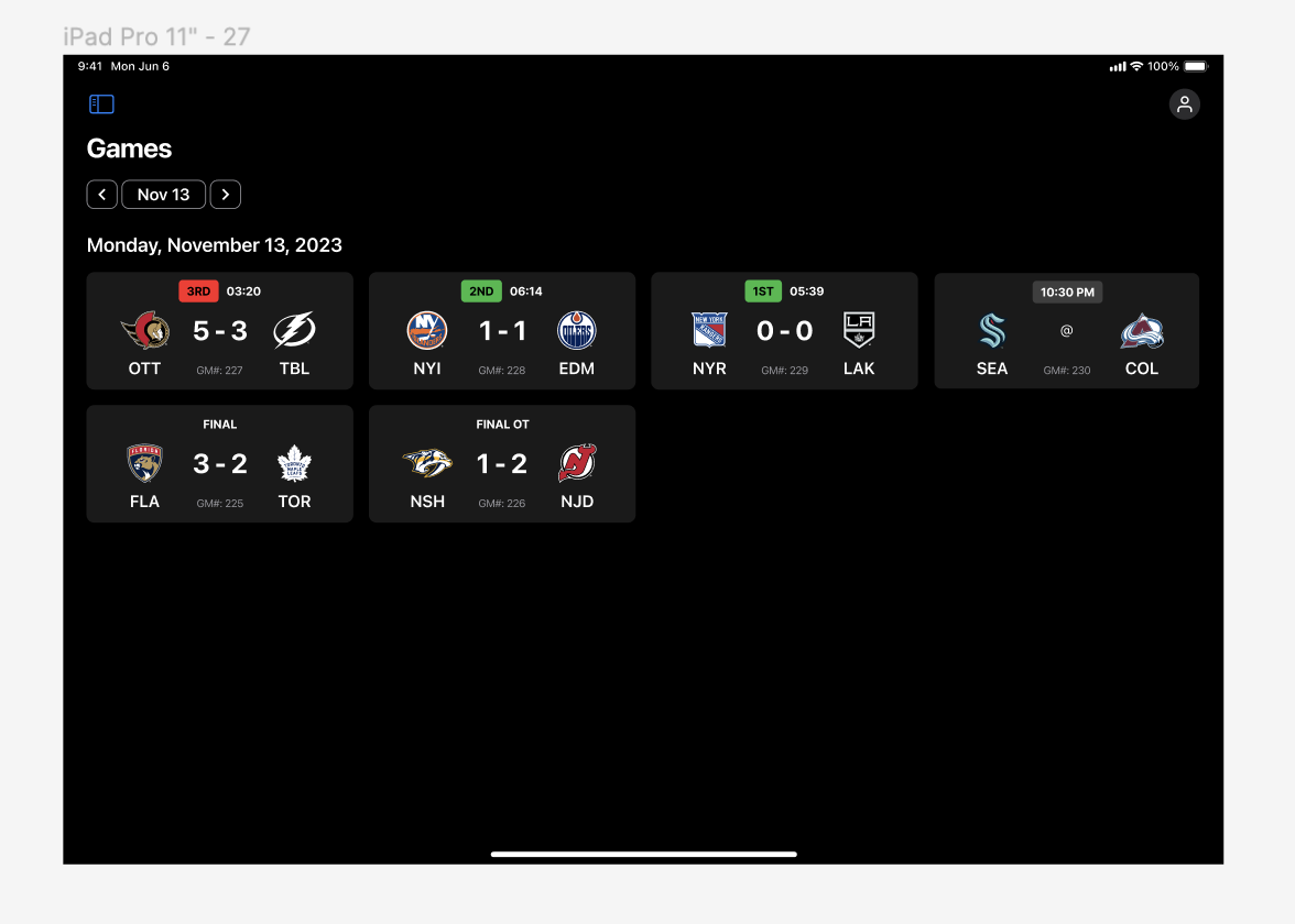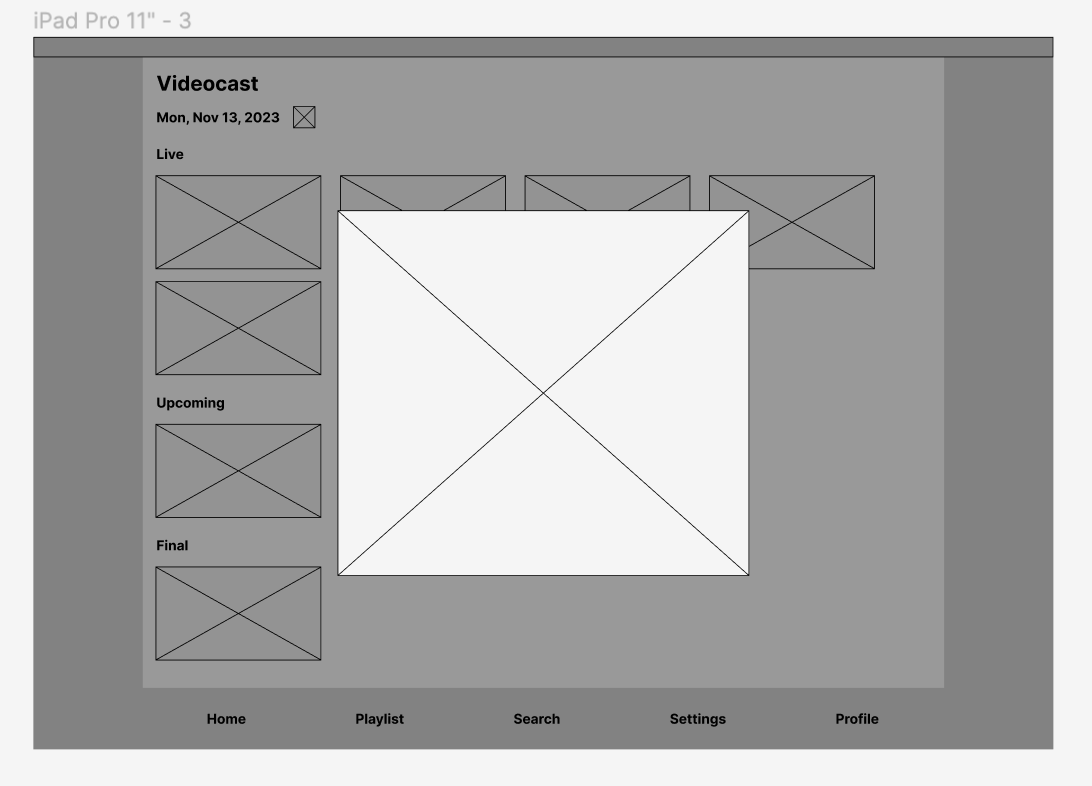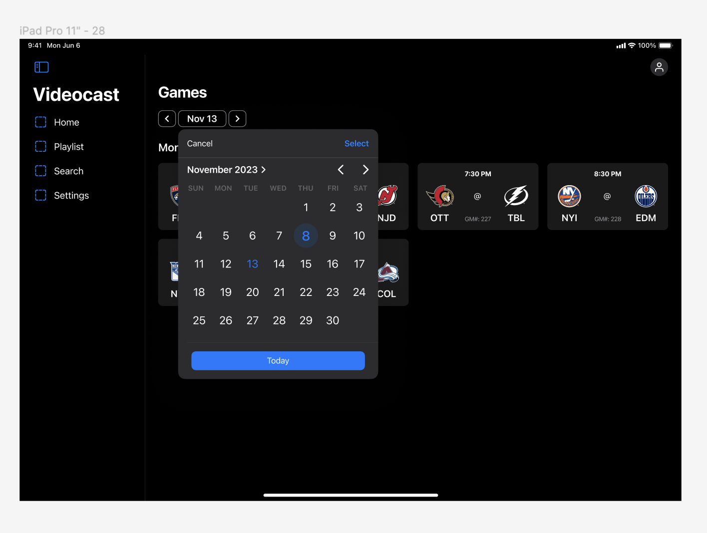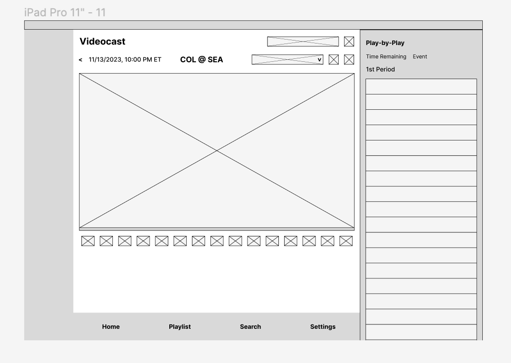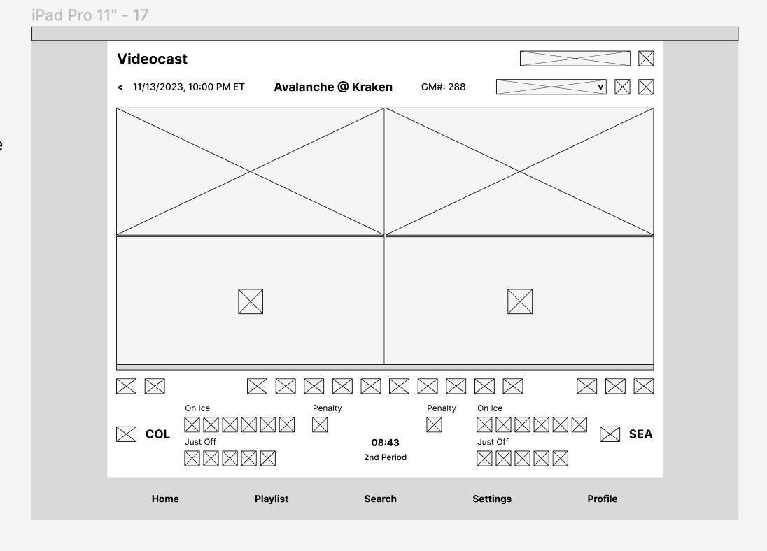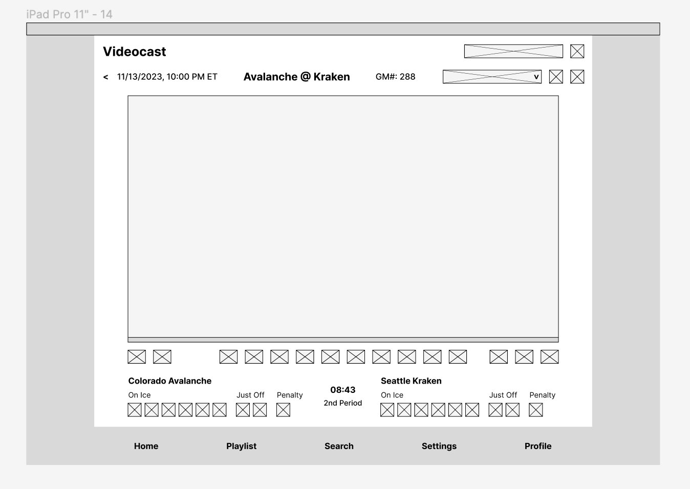 Videocast is currently a desktop app that officials and NHL employees can use to stream games, playback game events, create clips of events and highlights, and monitor live games. Users also have the ability to watch past games. There has been an ask for an iPad app because the officials on ice do not always have easy access to a laptop, and need an efficient way to stream. For this first phase, only streaming capabilities will be implemented, with editing capabilities to come in future phases.